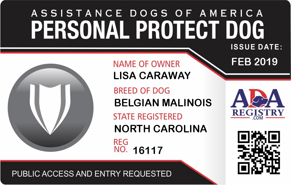 Personal Protection Dog Registration for Bernie Mac