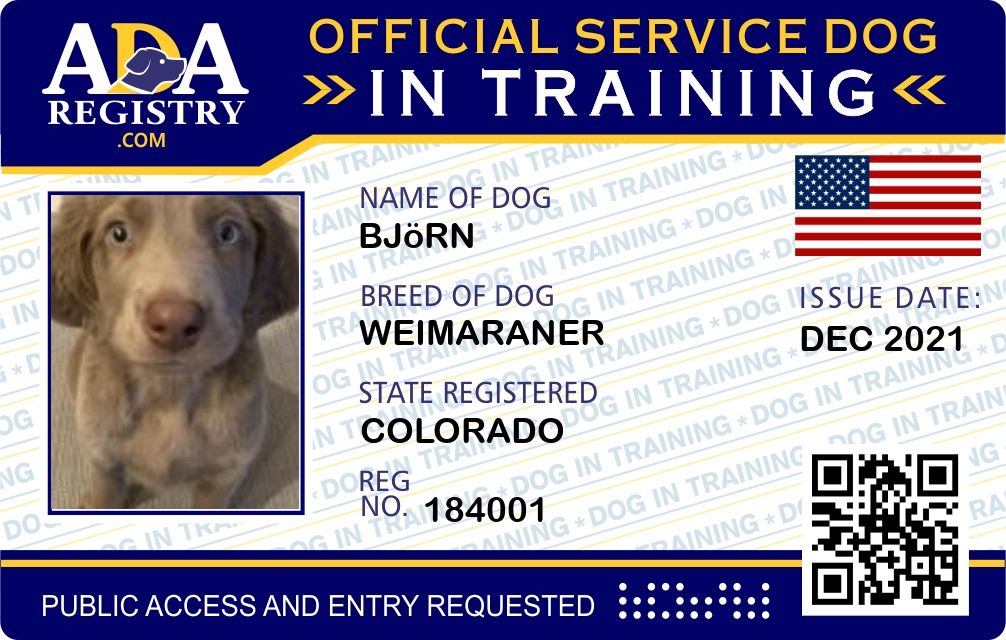Service Dog In Training Registration for Björn