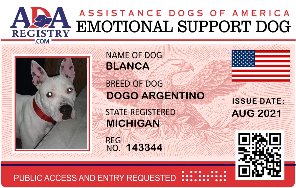 Emotional Support Dog Registration for Blanca