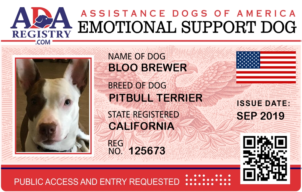 Emotional Support Dog Registration for Bloo Brewer