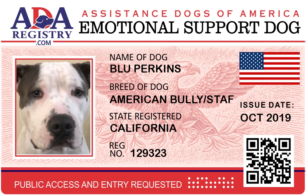 Emotional Support Dog Registration for BLU PERKINS