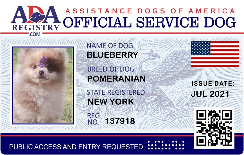 Service Dog Registration for Blueberry