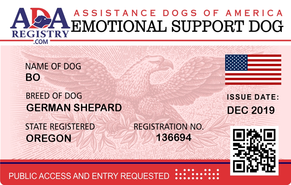 Emotional Support Dog Registration for Bo