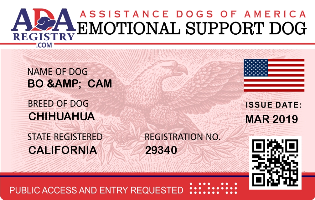 Emotional Support Dog Registration for Bo & cam