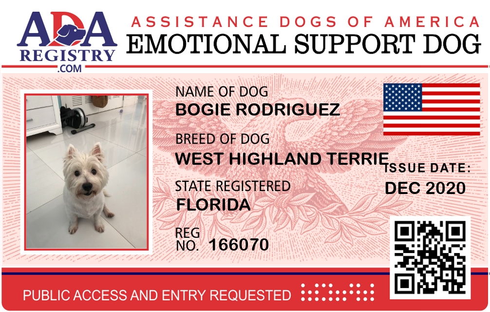 Emotional Support Dog Registration for Bogie Rodriguez