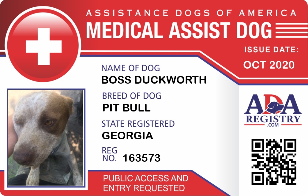 Medical Assistance Dog Registration for Boss Duckworth
