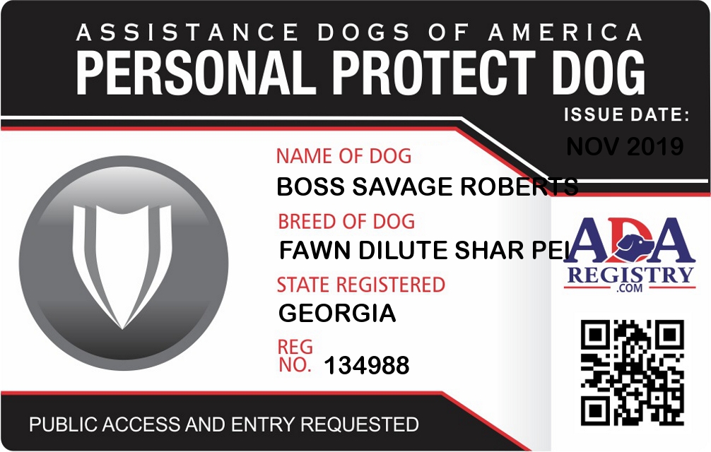 Personal Protection Dog Registration for Boss Savage Roberts