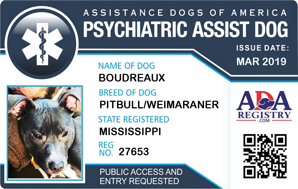 Psychiatric Service Dog Registration for Boudreaux