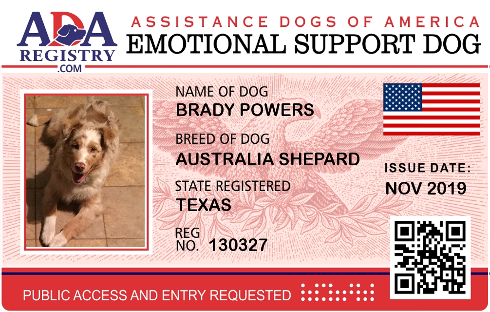 Emotional Support Dog Registration for Brady Powers