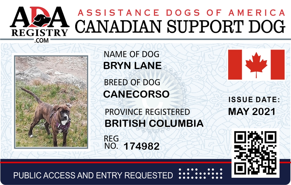 Emotional Support Dog Registration for Bryn Lane