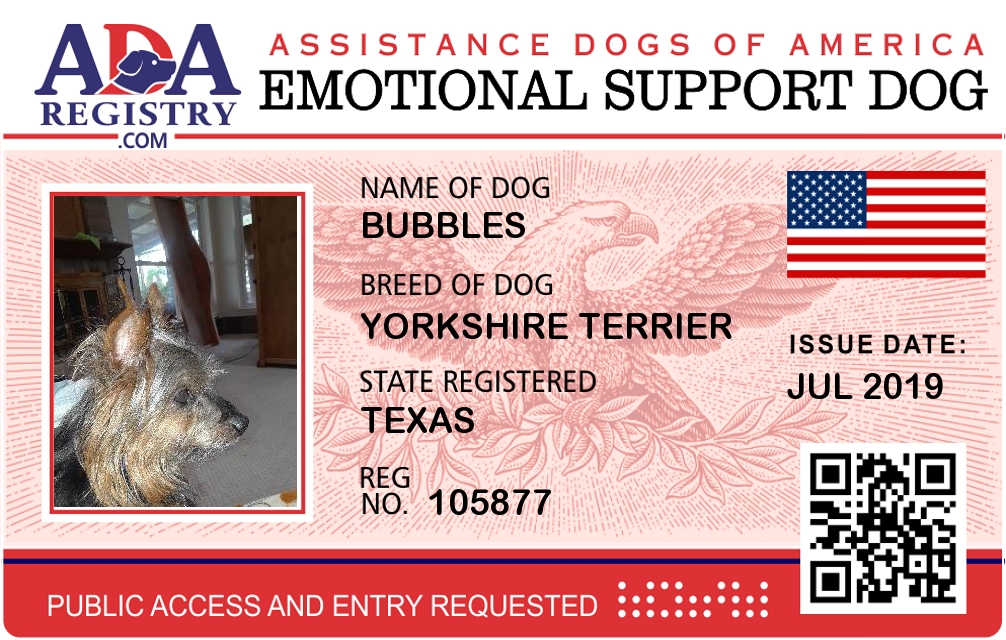 Emotional Support Dog Registration for Bubbles