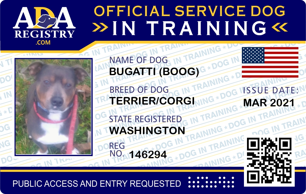 Service Dog In Training Registration for Bugatti (Boog)