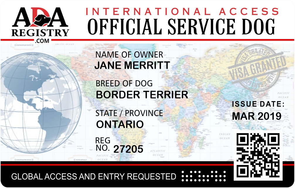 International Service Dog Registration for C.C. Short for Canadian Club