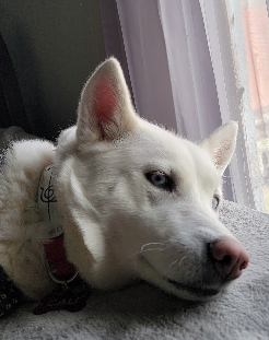 Cali is a Seizure alert dog, she is trained to alert Andrew if he has a potential of a seizure. She is also trained to help carry gear, help with balance, and if Andrew is incapable of walking due to a seizer she is trained to find help and bring them back to Andrew.