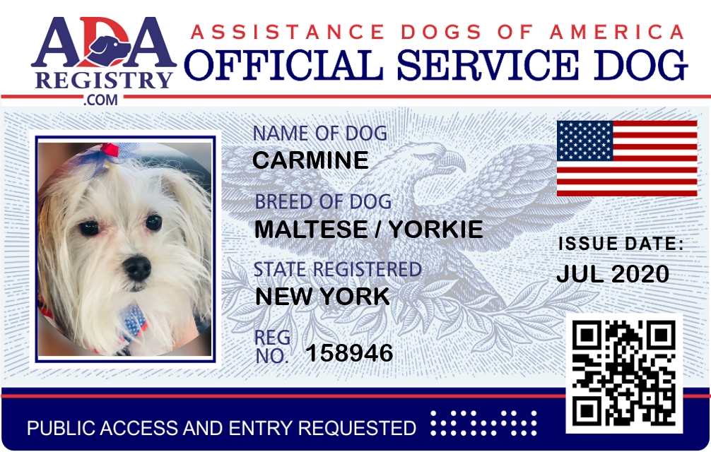 Service Dog Registration for Carmine