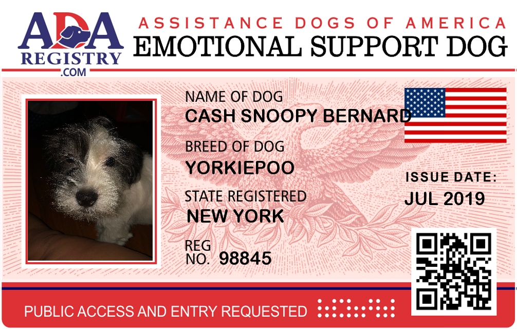 Emotional Support Dog Registration for Cash snoopy Bernard