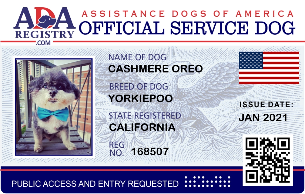 Service Dog Registration for Cashmere Oreo