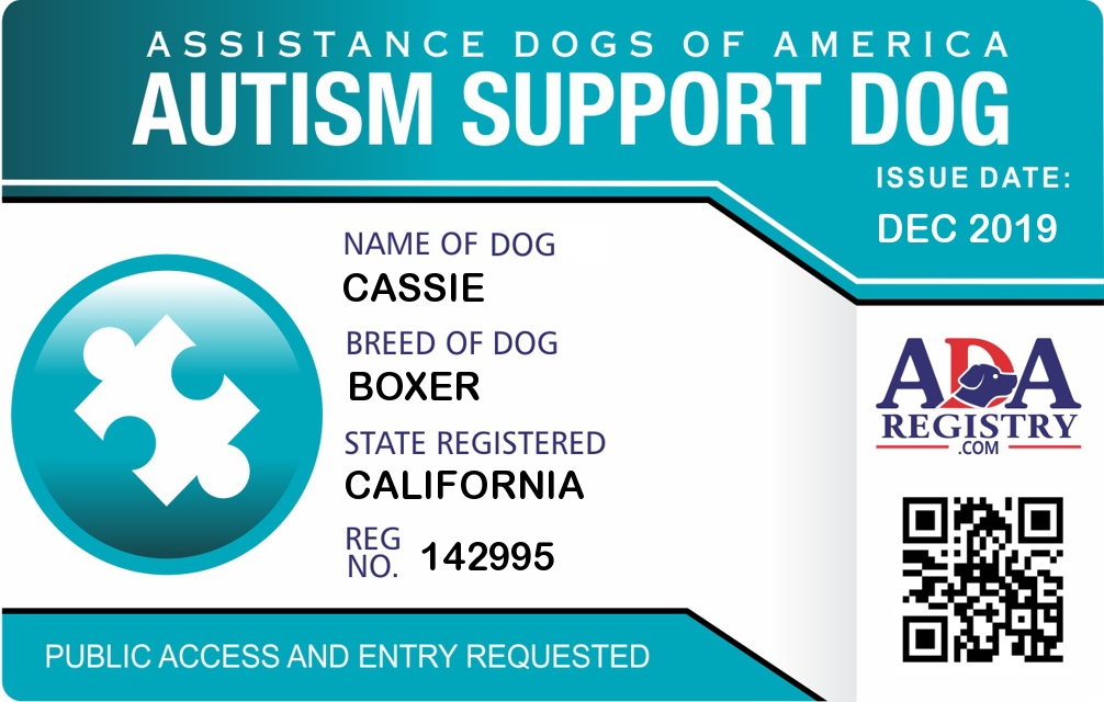 Autism Assistance Dog Registration for Cassie