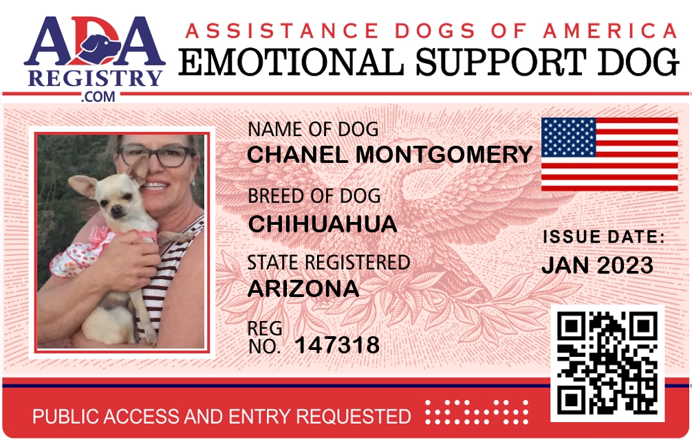 Emotional Support Dog Registration for Chanel Montgomery