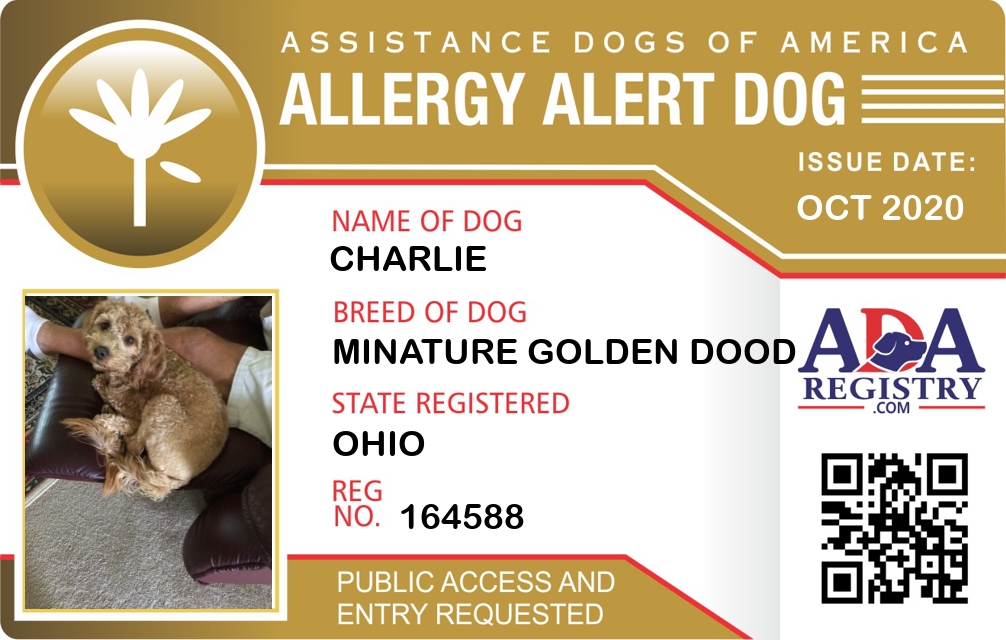 Allergy Alert Dog Registration for Charlie