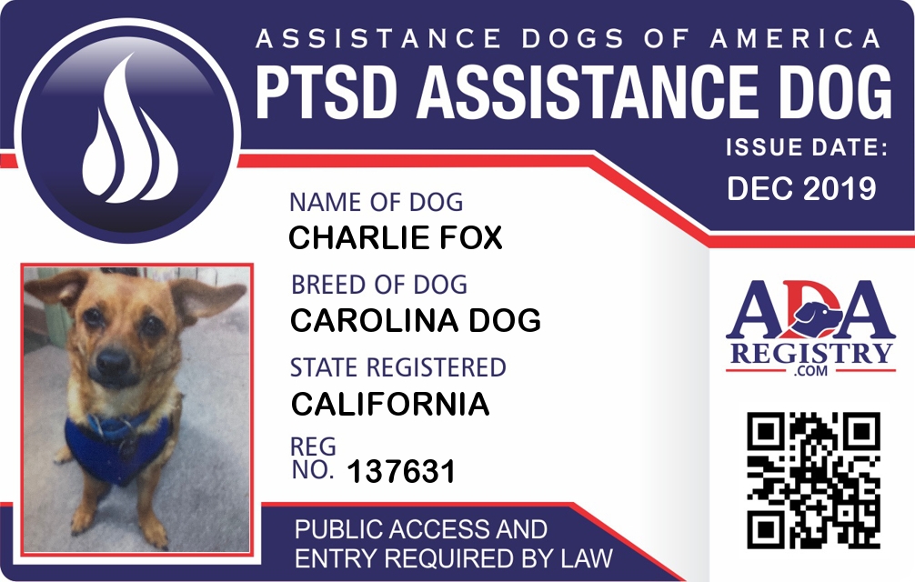 PTSD Assistance Dog Registration for Charlie Fox