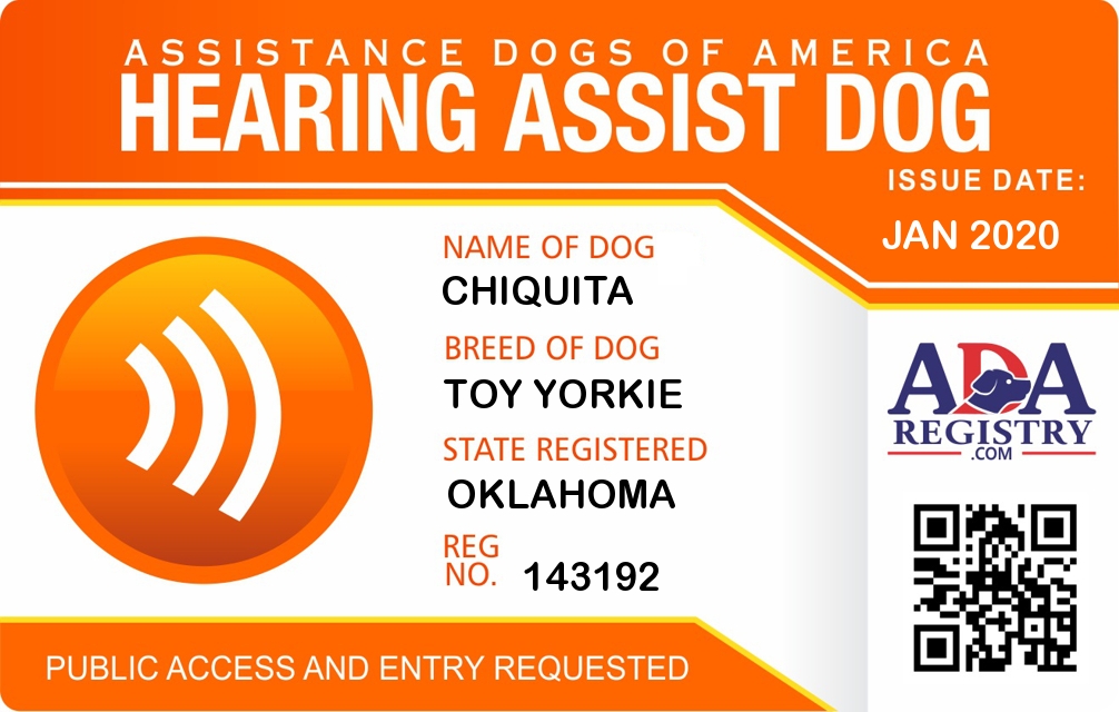 Hearing Assistance Dog Registration for Chiquita