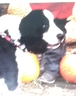 English springer spaniel who howls.  Loves babies and small children.  Stays close to reassure I\’m safe and calm.  Sparkly personality