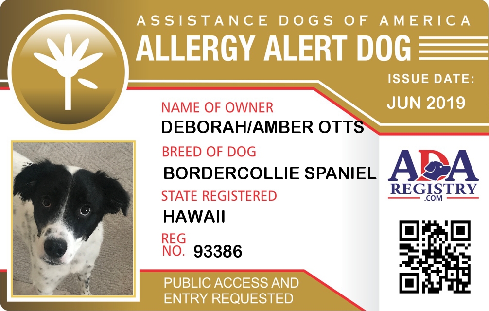 Allergy Alert Dog Registration for Coco Chanel Otts