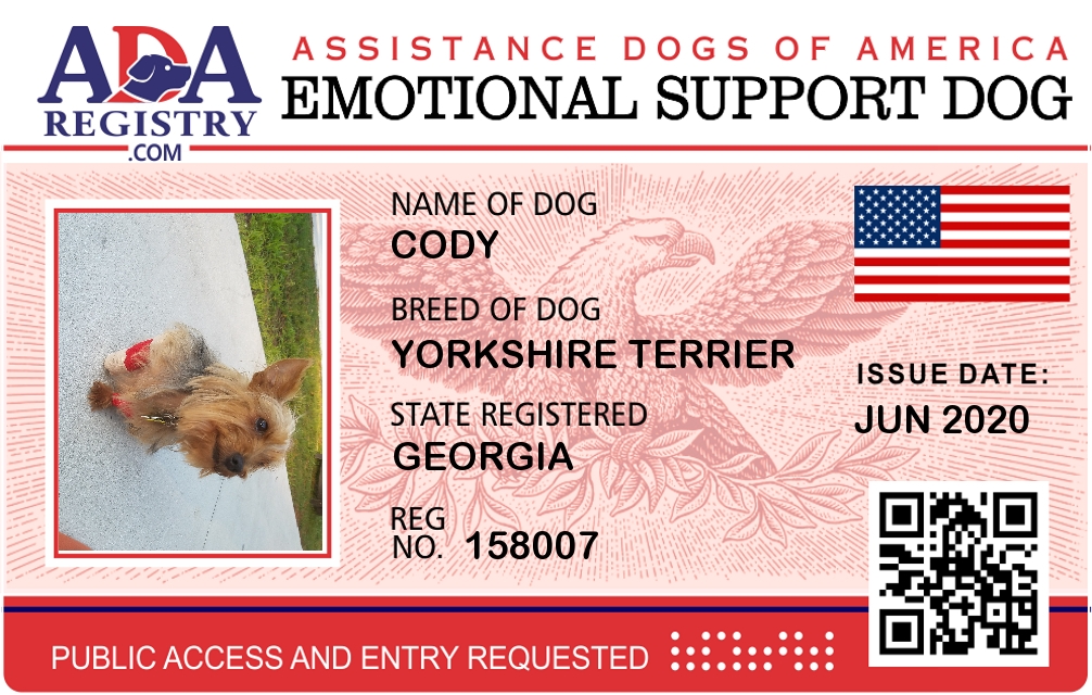 Emotional Support Dog Registration for Cody