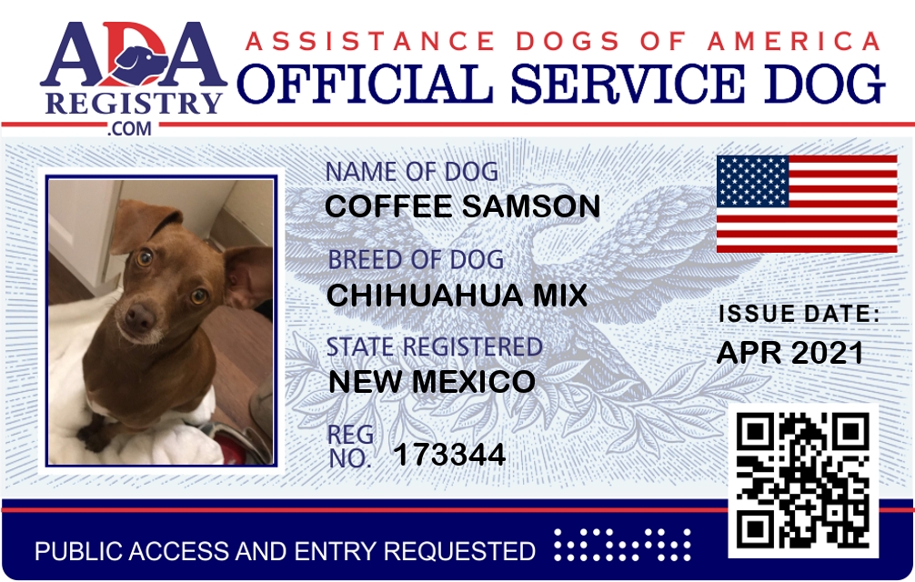 Service Dog Registration for Coffee Samson