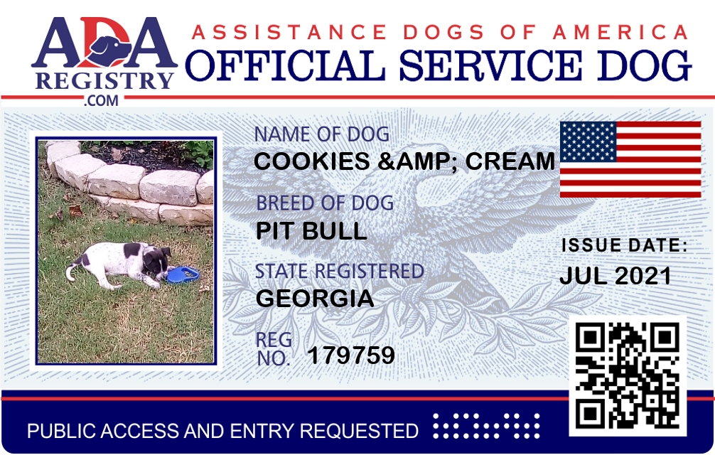Service Dog Registration for Cookies & cream