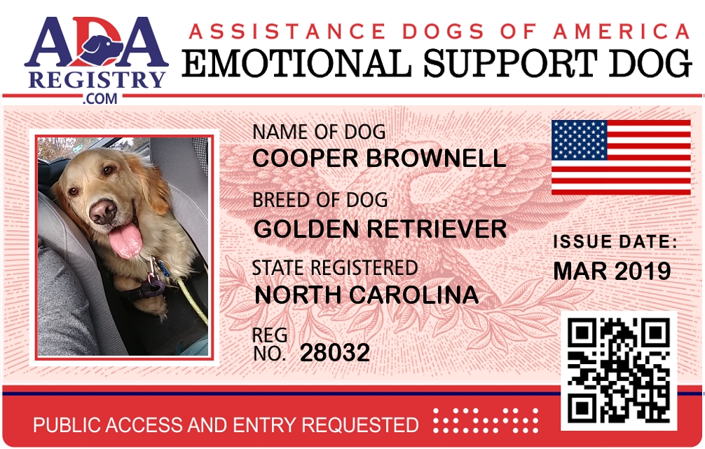Emotional Support Dog Registration for Cooper brownell