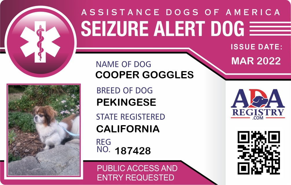 Seizure Assistance Dog Registration for Cooper Goggles