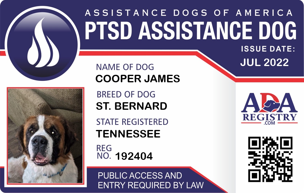 PTSD Assistance Dog Registration for Cooper James
