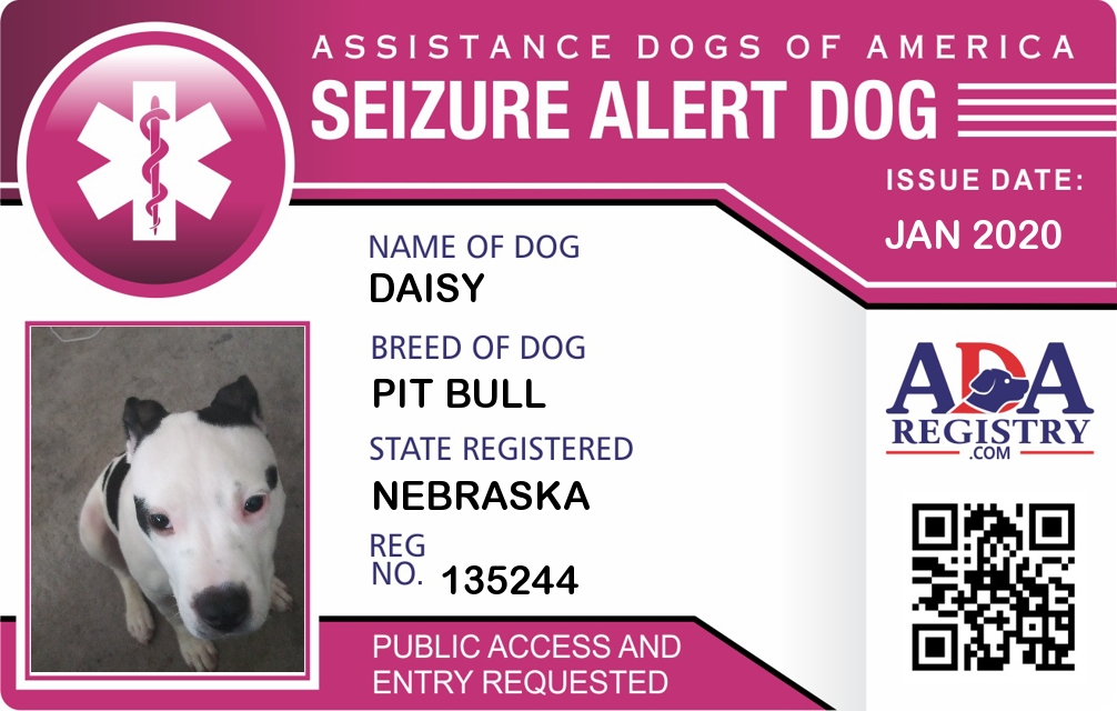 I am a black and  pit bull and i am a seizure alert dog in training. I like to pull and jump and i love people but mom never lets me have fun if im in my vest. I am very playful and loving?