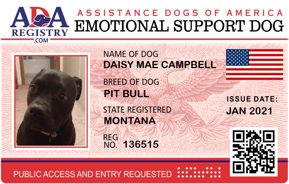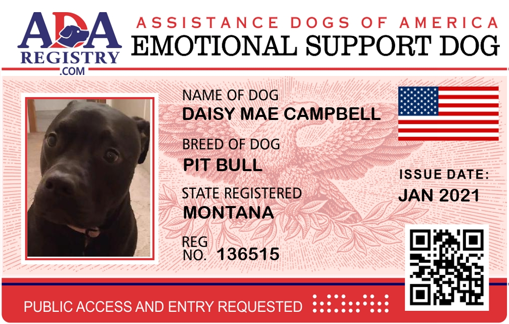 Emotional Support Dog Registration for Daisy Mae Campbell