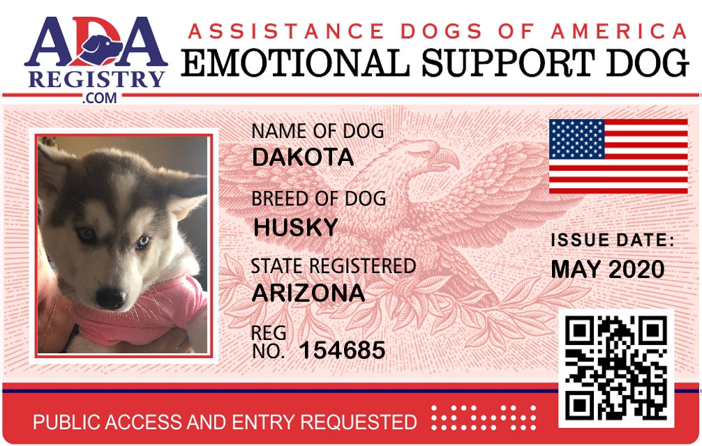 Emotional Support Dog Registration for DAKOTA