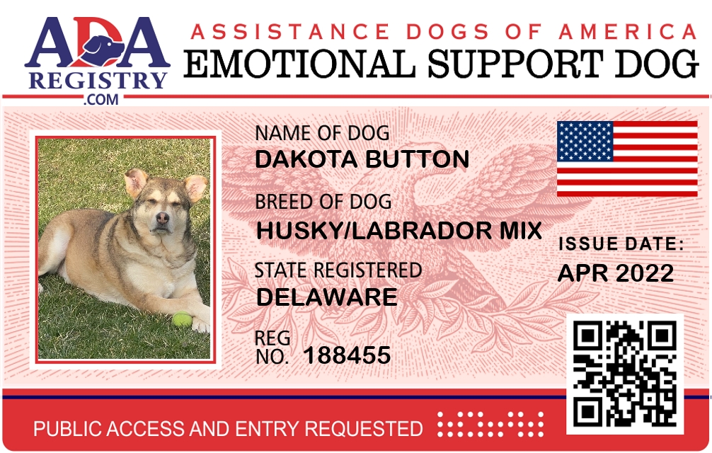 Emotional Support Dog Registration for Dakota Button