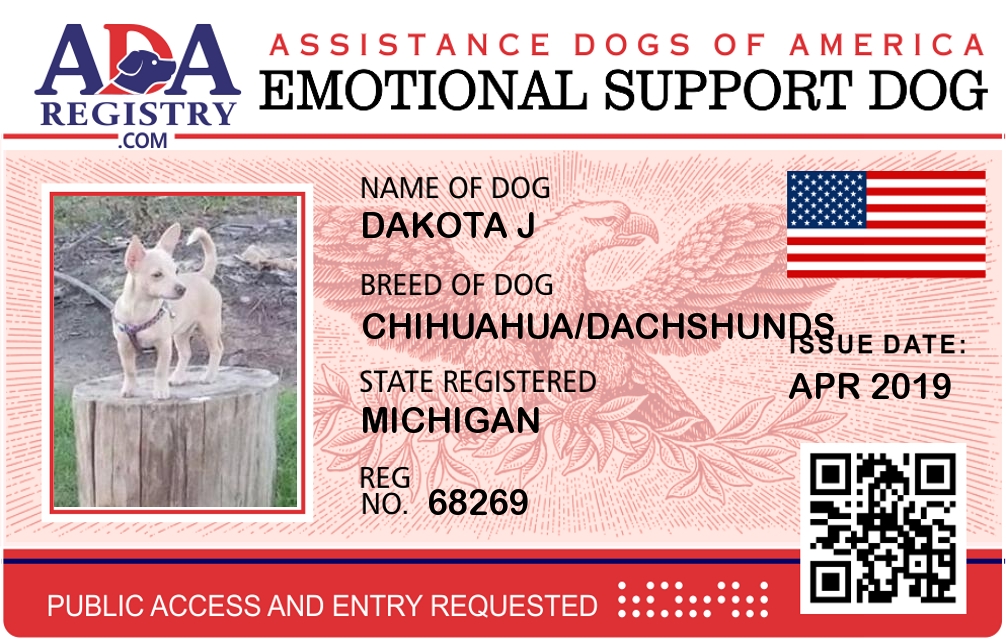 Emotional Support Dog Registration for DaKota J