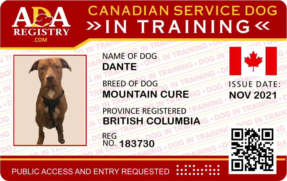 Service Dog In Training Registration for Dante