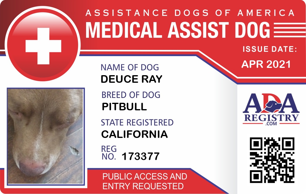 Medical Assistance Dog Registration for Deuce Ray