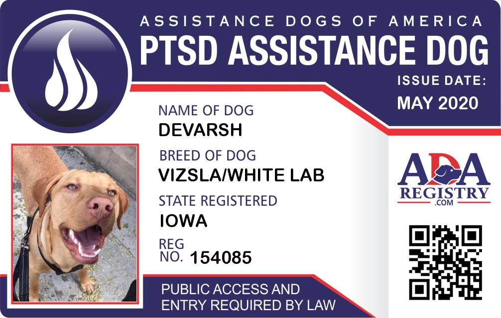PTSD Assistance Dog Registration for Devarsh