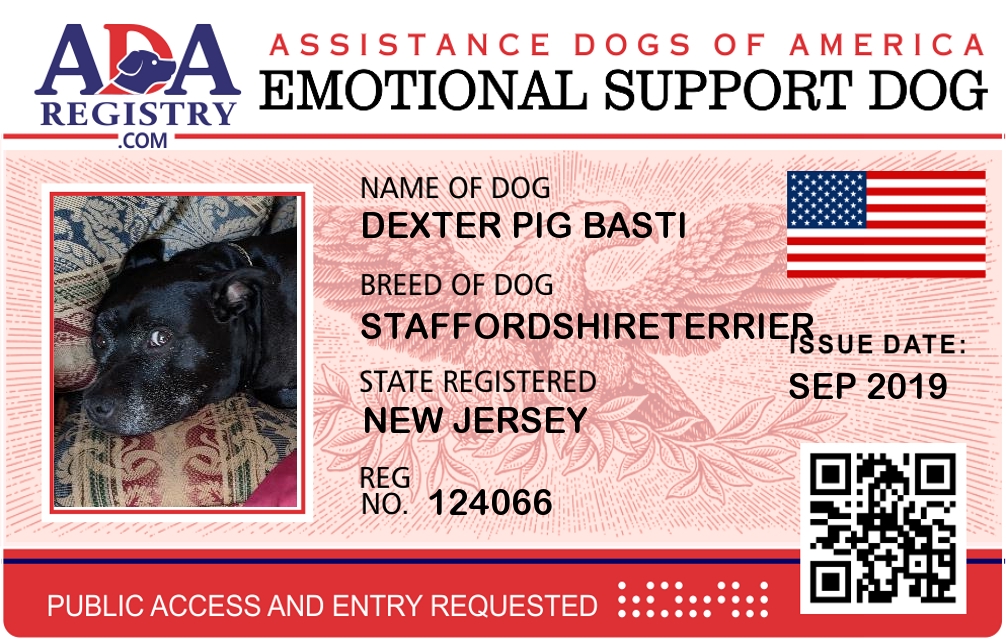 Emotional Support Dog Registration for Dexter Pig Basti