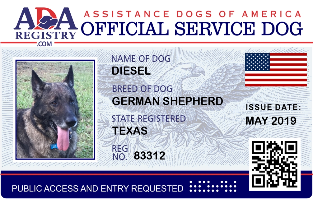 Service Dog Registration for Diesel