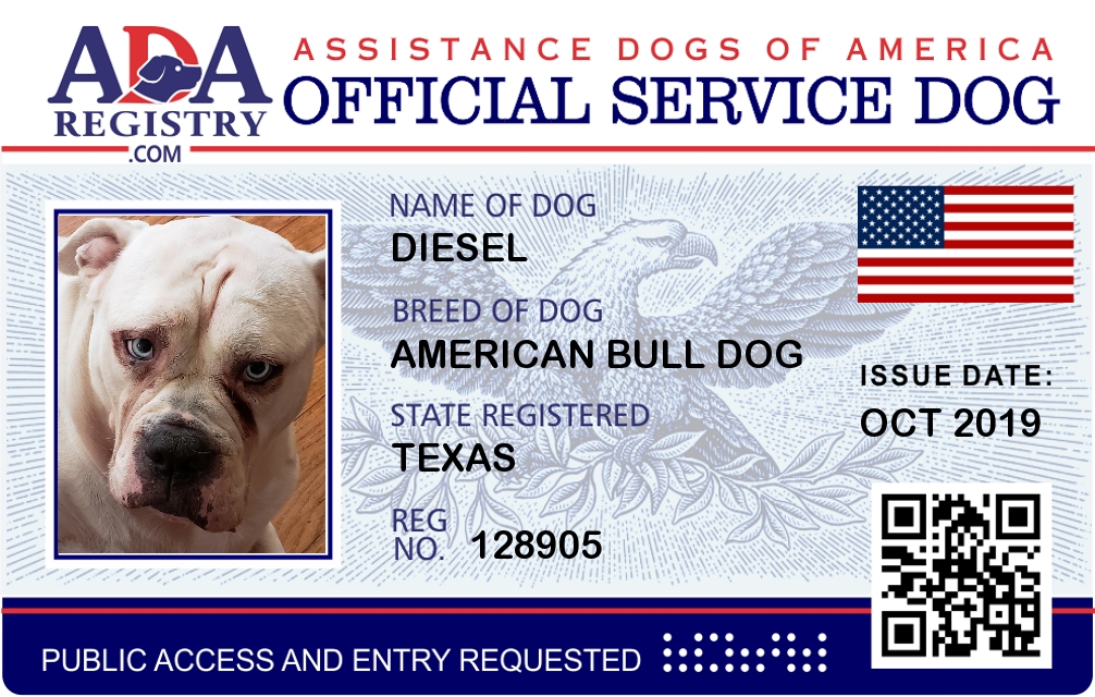 Service Dog Registration for Diesel