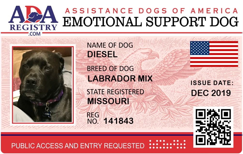 Emotional Support Dog Registration for Diesel
