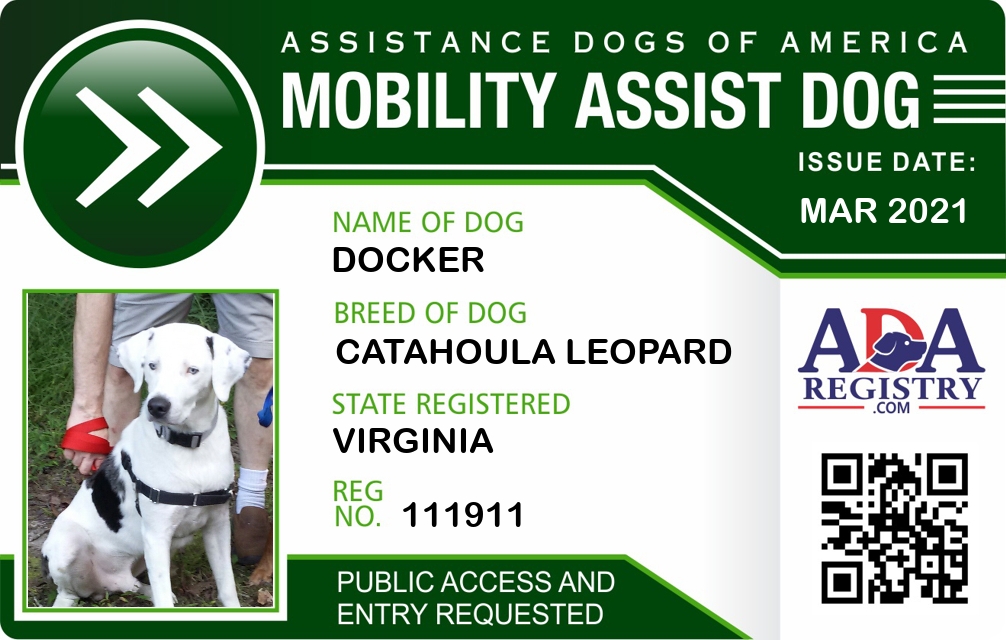 Brace / Mobility Assistance Dog Registration for Docker