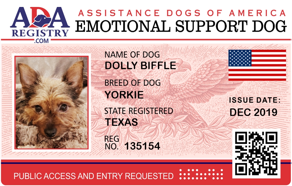 Emotional Support Dog Registration for Dolly Biffle