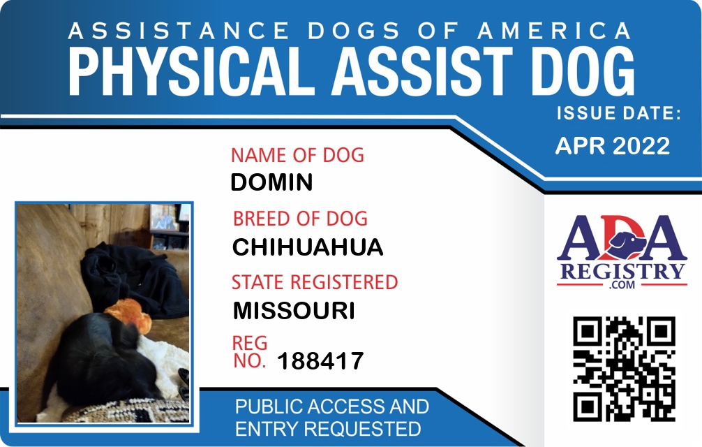 Physical Assistance Dog Registration for Domin