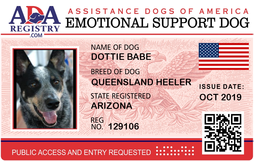 Emotional Support Dog Registration for Dottie Babe